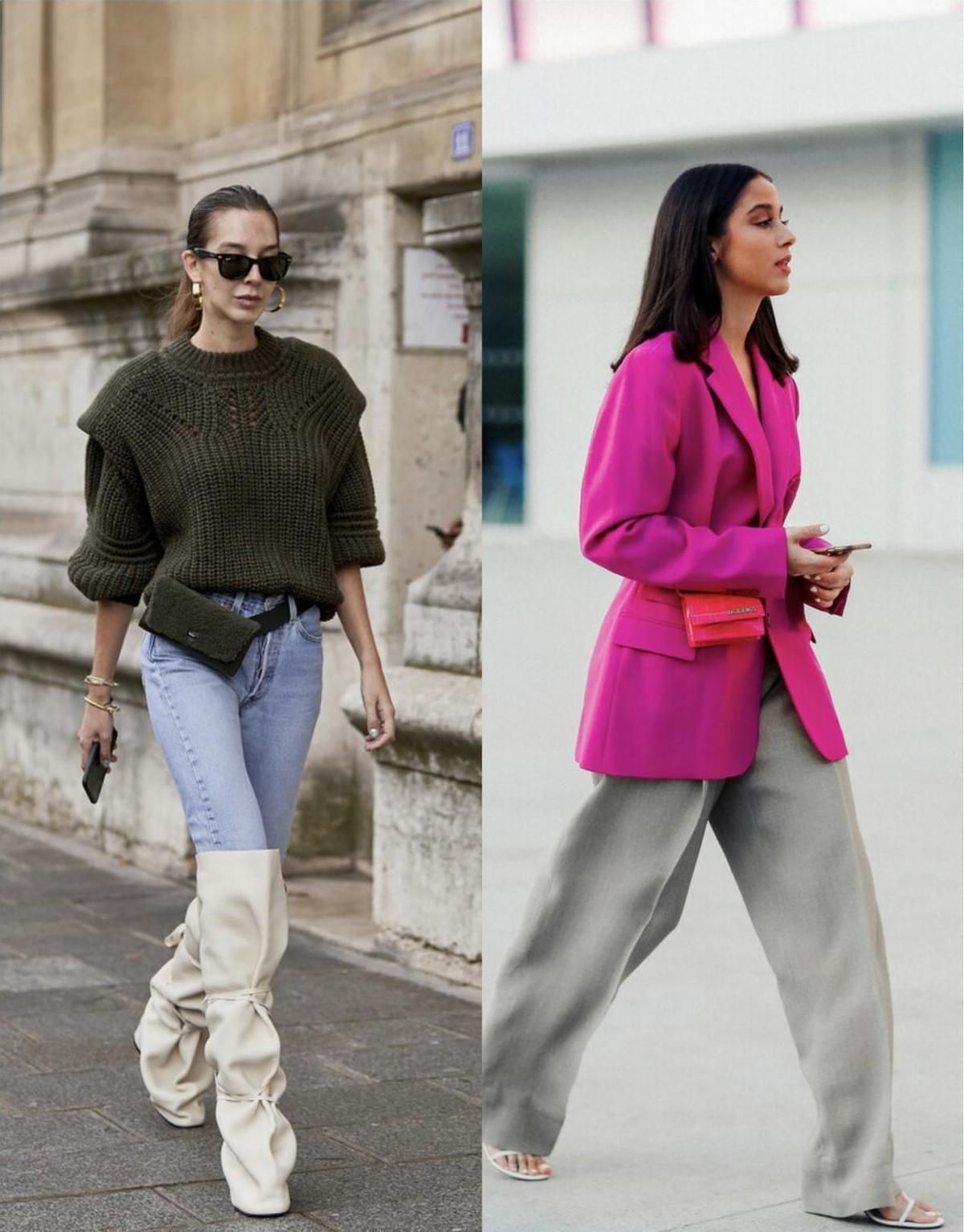 将腰包与西装西裤进行搭配,能够打破造型的严肃感,增添了一丝时尚的气息,时髦精们早就开始这样穿了。